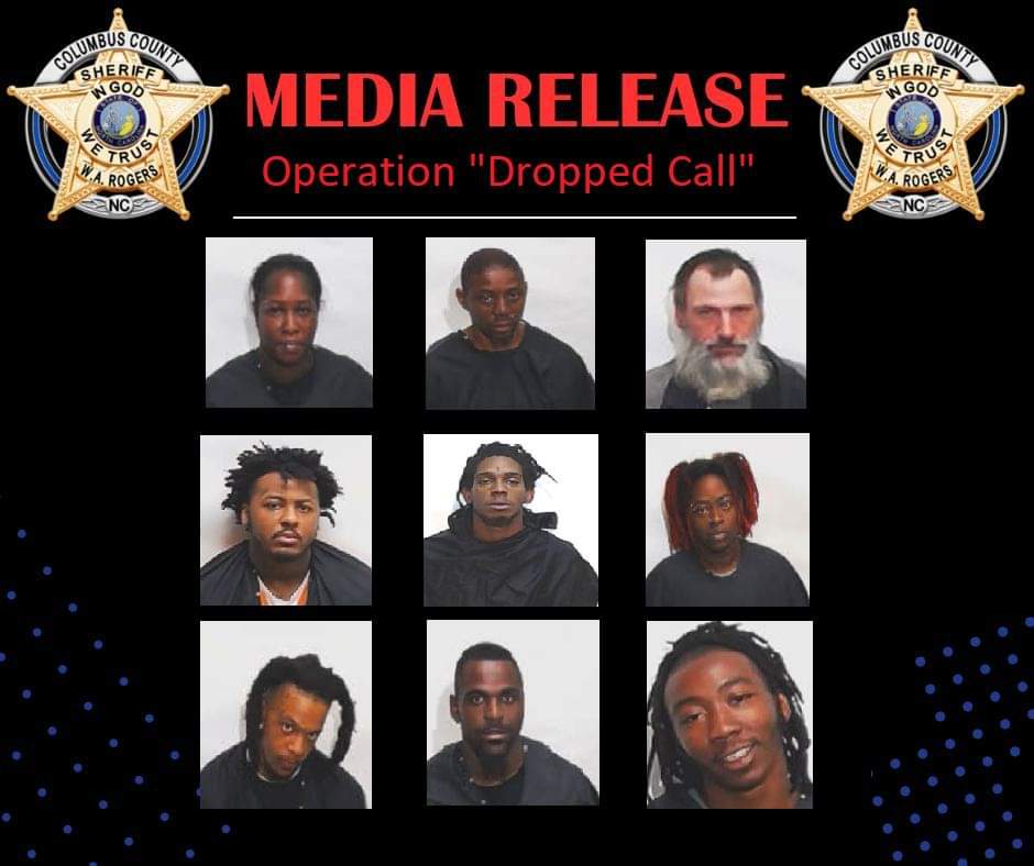 The Columbus County Sheriff’s Office Vice Narcotics Division concluded a extensive investigation into the distribution of illegal substances into the Columbus County Detention Center. During the course of this investigation nine people have been charged with over forty felonies.
